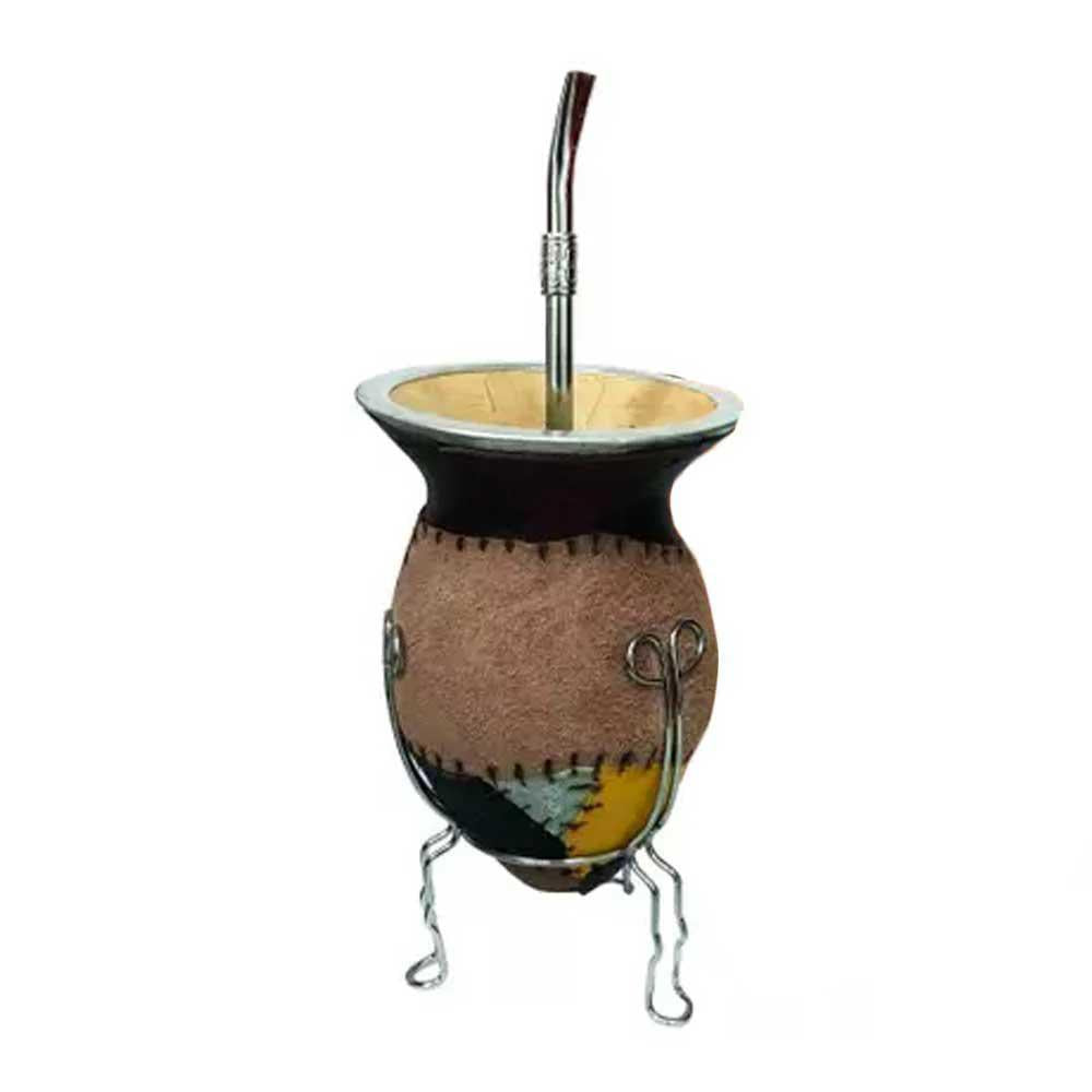 Authentic Brazilian Kit Chimarrao Couro Mini: Premium leather mini set for traditional yerba mate chimarrão. Compact and portable, handcrafted with genuine Brazilian couro leather.