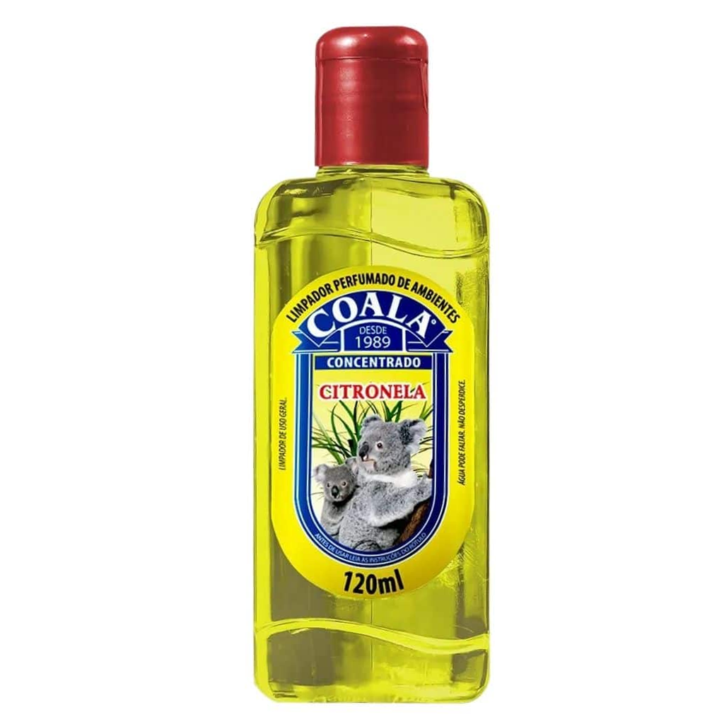 Discover the authentic Brazilian Coala Citronela Limpador Perfumado 120ml – a concentrated scented cleaner and air freshener with invigorating citronella aroma that cleans, perfumes, and repels insects.