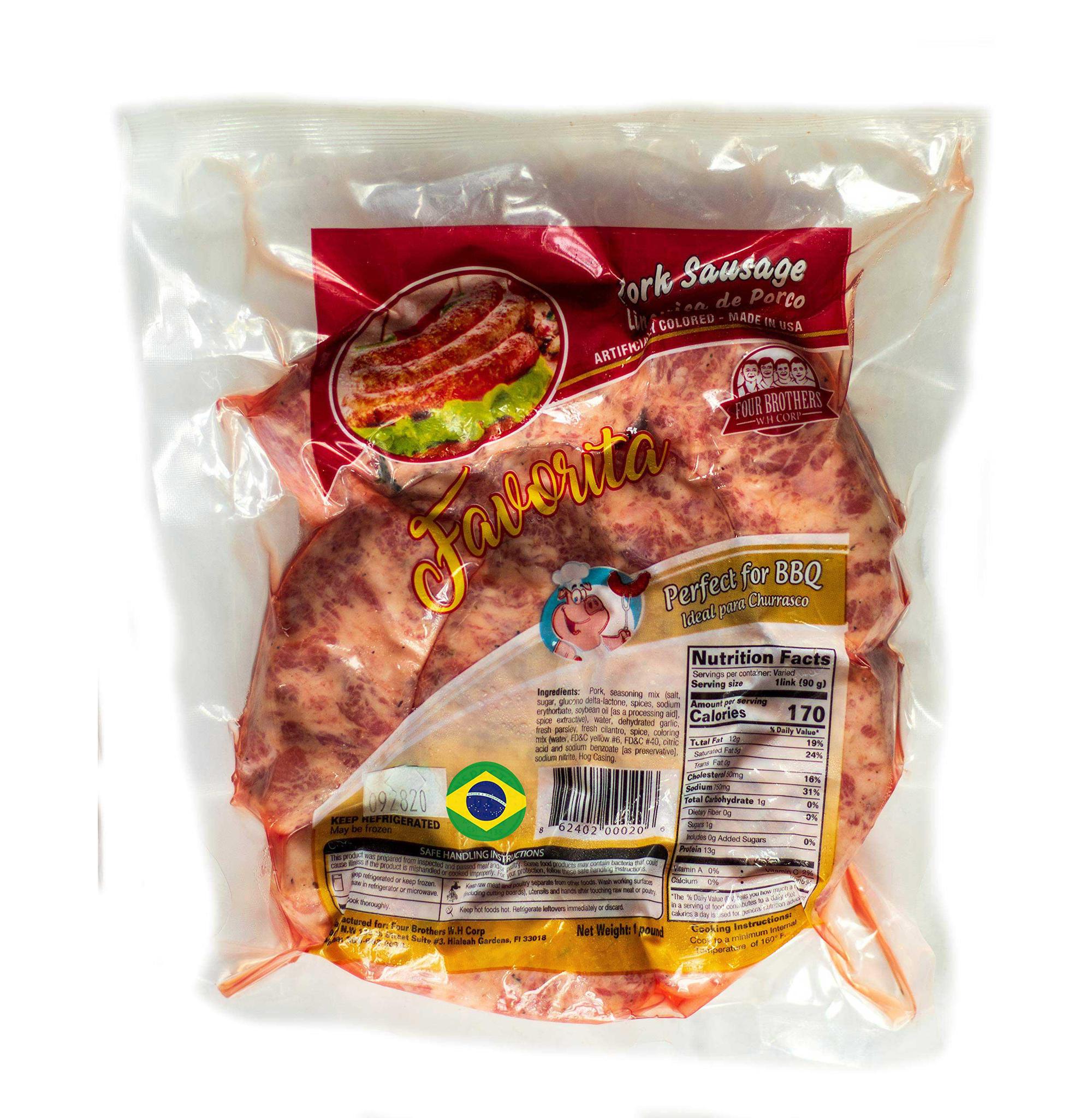 Linguica Toscana Favorita 1lb: Authentic Brazilian sausage delivering smoky, garlicky heat from malagueta peppers and premium pork. Fully cooked and ready in minutes—grill whole for churrasco or slice for quick appetizers in this convenient 1lb pack.