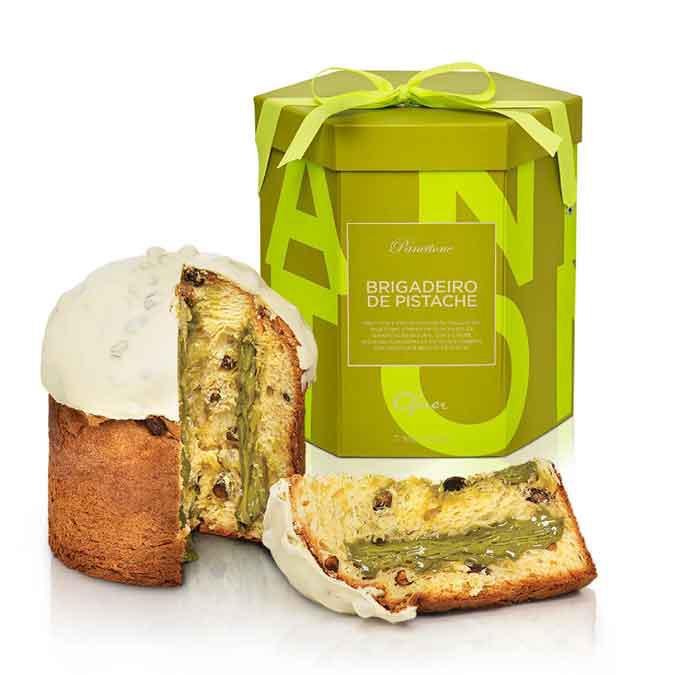 Ofner Panettone com Brigadeiro de Pistachio 1kg: Authentic Brazilian holiday panettone fusing Italian tradition with creamy pistachio brigadeiro.