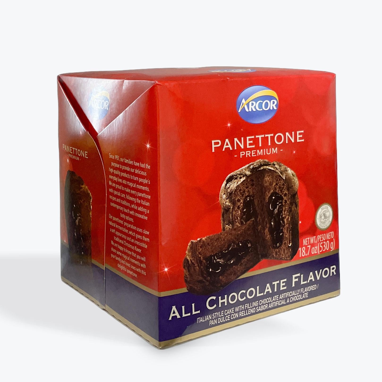 Authentic Brazilian Panettone de Chocolate Arcor 530g: Indulge in rich chocolate chips and creamy filling wrapped in fluffy, golden dough.